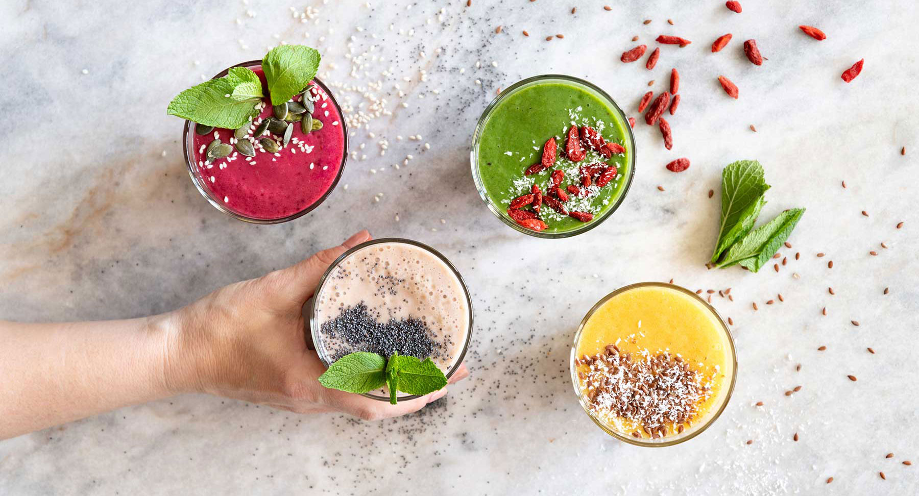 Bên cạnh đó, smoothies dành cho chế độ giảm cân sẽ không sử dụng các chất tạo ngọt mà sẽ thay thế bằng loại quả có vị ngọt tự nhiên. Các loại sữa chua hay sữa tươi được dùng cho thực đơn smoothies giảm cân nên là loại ít đường và tốt nhất là không đường. Nên bổ sung các loại hạt vào smoothies giảm cân để cung cấp cho cơ thể nhiều chất dinh dưỡng và hỗ trợ quá trình giảm cân tốt nhất.