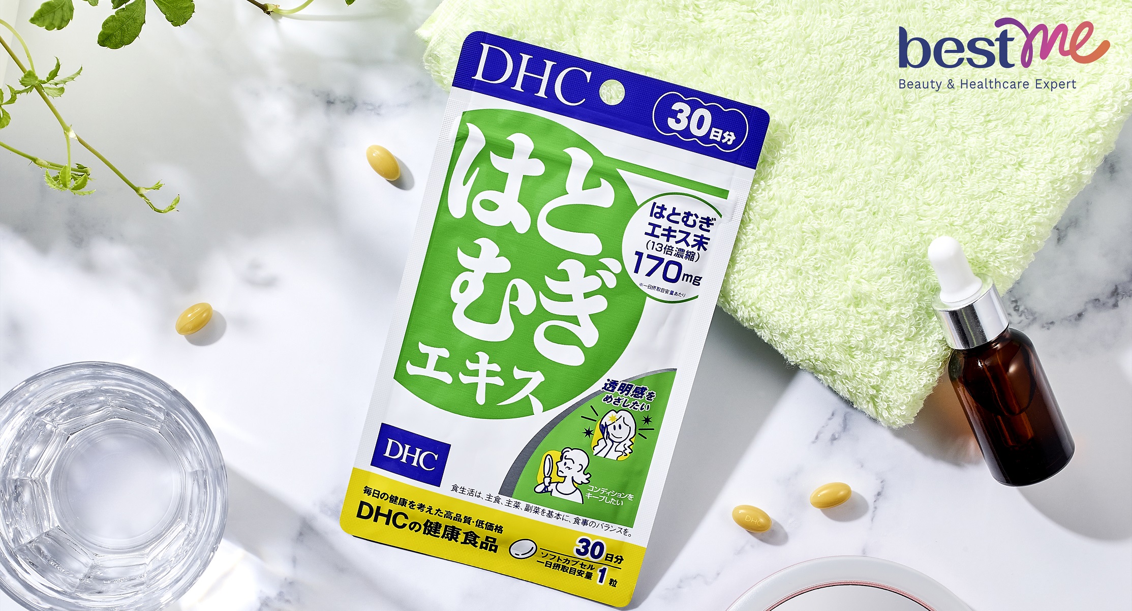 Đối với sản phẩm được phân phối bởi Bestme đều có in hướng dẫn cách sử dụng viên sáng da DHC chi tiết trên bao bì.
