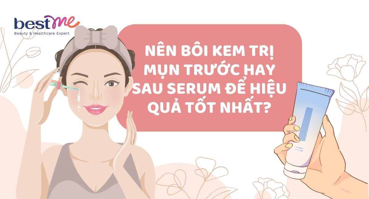 Để kết hợp điều trị mụn và nuôi dưỡng làn da trắng sáng, nhiều chị em thường lựa chọn sử dụng kem trị mụn cùng serum. Tuy nhiên, vẫn có rất nhiều người đặt câu hỏi nên bôi kem trị mụn trước hay sau serum? Hãy theo dõi bài viết sau đây của Bestme để tìm hiểu cách sử dụng hai sản phẩm này nhé!
