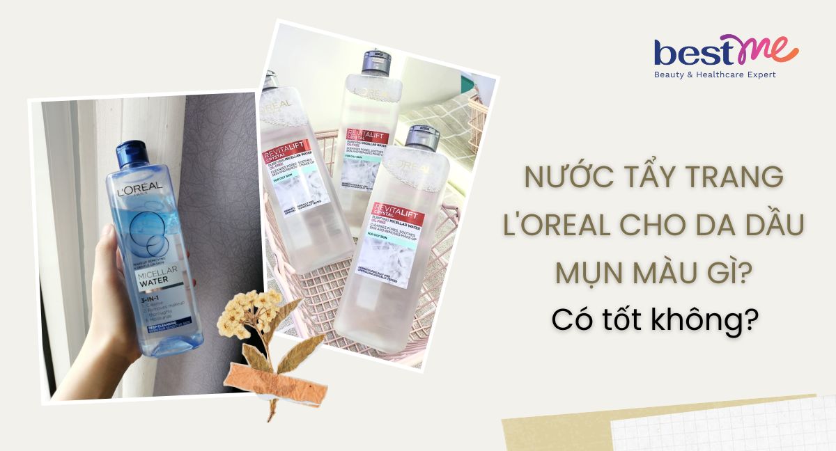 Nước tẩy trang l'oreal cho da dầu mụn màu gì? Có tốt không?